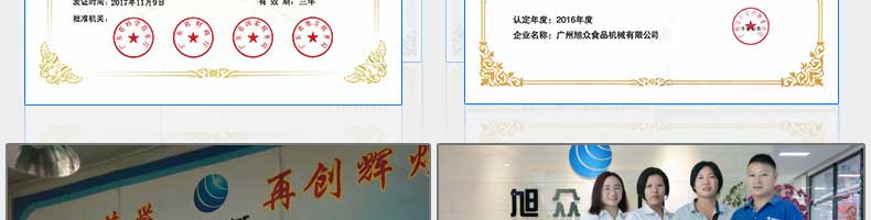 廣州旭眾食品機械有限公司是一家集科研開發(fā),生產(chǎn)設(shè)計,營銷服務(wù)為一體的現(xiàn)代化生產(chǎn)企業(yè)?,F(xiàn)代化生產(chǎn)車間,精湛制造技術(shù),所產(chǎn)機械歷經(jīng)市場重重考驗,不斷贏得海內(nèi)外客戶的贊譽。