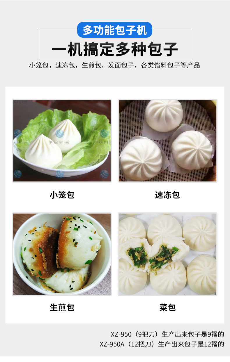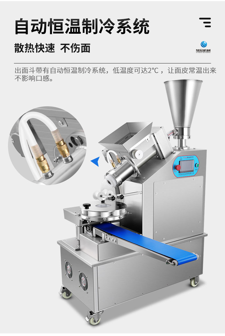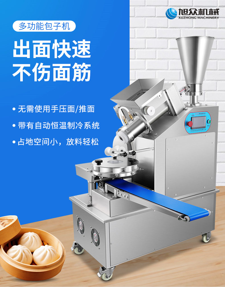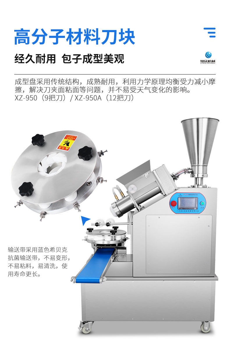 XZ-950型多功能包子機(jī),多功能包子機(jī),出面快速、不傷面筋。無需使用手壓面/推面,帶有自動(dòng)恒溫制冷系統(tǒng),占地空間小,放料輕松。