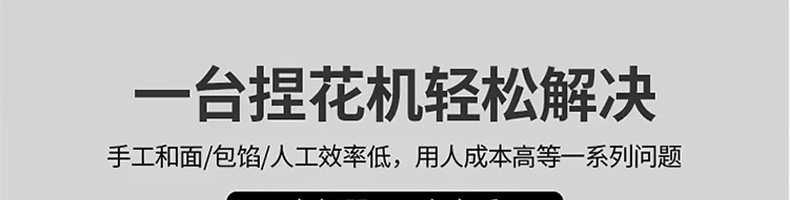 XZ-7200捏花機(jī),一臺(tái)捏花機(jī)輕松解決:手工和面包餡/人工效率低,用人成本高等一系列問(wèn)題一臺(tái)機(jī)器=10個(gè)人手工,24折捏花·外形美觀(guān)仿手工多道壓面卷面皮,卷面式包餡成型,制品表面光滑。
