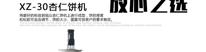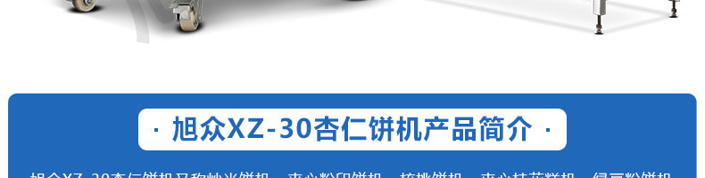 XZ-30杏仁餅機(jī),該機(jī)用于制作杏仁餅、炒米餅成型、炒米餅成形、夾心粉餅,綠豆餅。