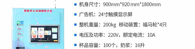 無(wú)人售貨冰淇淋機(jī), 人工成本越來(lái)越高,無(wú)人店、無(wú)人售賣(mài)機(jī)必將是一個(gè)趨勢(shì)。簡(jiǎn)單而又重復(fù)的勞動(dòng)(售賣(mài))必將被智能無(wú)人替代。無(wú)人售貨自助冰淇淋機(jī)支持多種支付方式,支持遠(yuǎn)程監(jiān)管功能,支持預(yù)冷保鮮,支持多種口味混合,自動(dòng)清洗少料報(bào)警。無(wú)需人工、場(chǎng)地?zé)o限制。