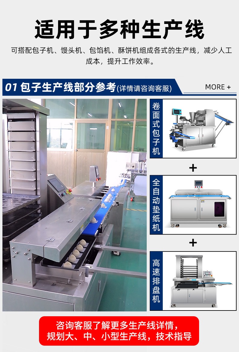 多功能商用高速排盤機(jī),自動(dòng)化程度高,可根據(jù)產(chǎn)品大小自由調(diào)節(jié)列數(shù)、排數(shù),自動(dòng)將產(chǎn)品自動(dòng)地排放在烘盤中,操作簡單,運(yùn)行平穩(wěn)。智能觸屏面板??刂葡到y(tǒng)由三菱PLC和進(jìn)口觸摸屏組成,操作簡單方便。具有故障自動(dòng)診斷,一目了然。