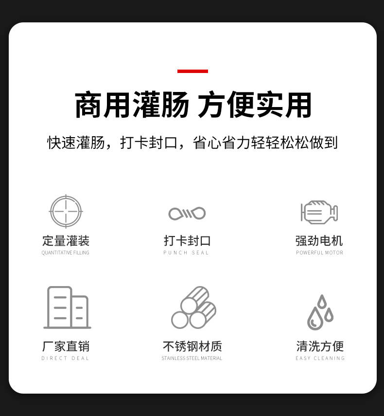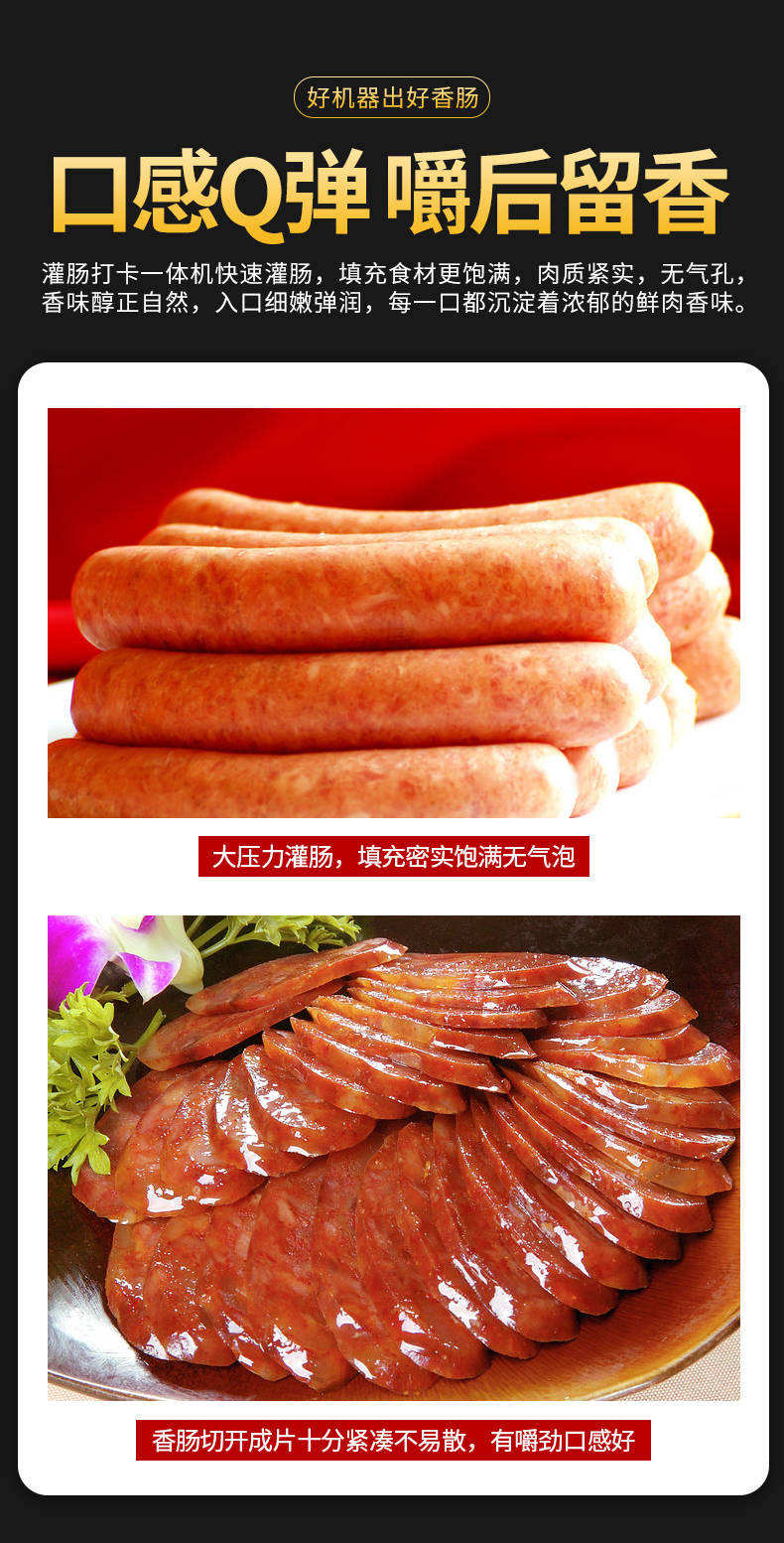 XZ-I型自動定量灌腸機,使用優(yōu)質(zhì)不銹鋼制造,符合食品機械的要求,只需1人操作,特別適合中小型肉食加工廠使用,以各種畜禽類肉糜為原料的香腸、火腿腸、熱狗等天然腸衣、蛋白腸衣、煙熏腸衣等制品,可以灌制定重量單腸,也可連續(xù)灌制長腸。