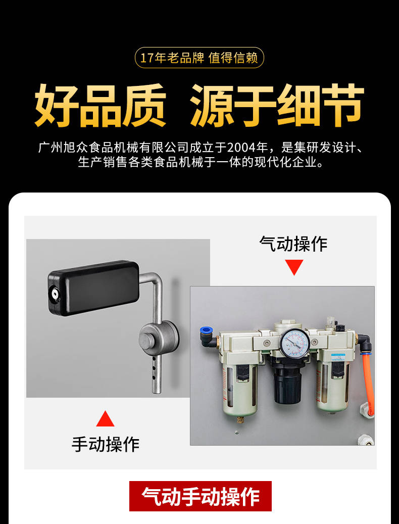 廣州旭眾食品機械有限公司是一家集科研開發(fā),生產(chǎn)設計,營銷服務為一體的現(xiàn)代化生產(chǎn)企業(yè)?,F(xiàn)代化生產(chǎn)車間,精湛制造技術,所產(chǎn)機械歷經(jīng)市場重重考驗,不斷贏得海內(nèi)外客戶的贊譽。