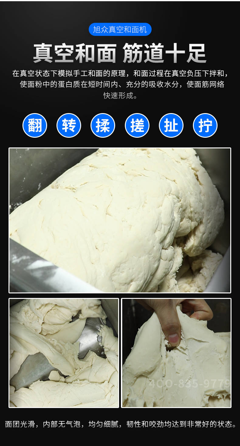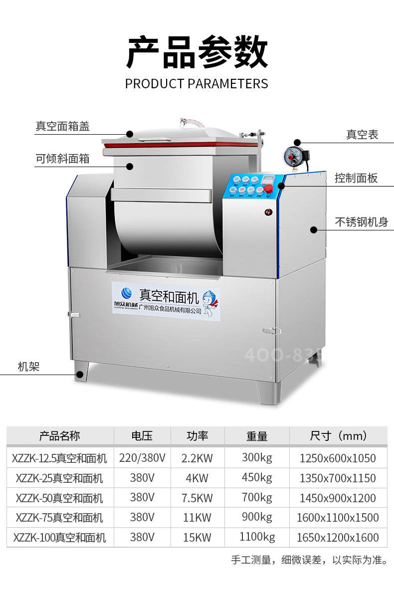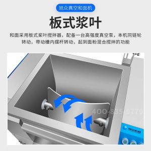XZZK-25真空和面機,商用真空和面機,操作簡單、大容量、和面快、面團筋道。在真空狀態(tài)下模擬手工和面的原理,和面過程在真空負壓下拌和,使面粉中的蛋白質(zhì)在短時間內(nèi)、充分的吸收水分,使面筋網(wǎng)絡(luò)快速形成。