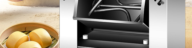 低噪音和面機(jī),利用攪拌器的轉(zhuǎn)動(dòng),使面粉和水在面斗中形成小顆粒,粘黏形成大面團(tuán)塊。大容量翻轉(zhuǎn)面斗,采用優(yōu)質(zhì)不銹鋼焊接制造,防腐蝕,食品接觸安全,符合食品生產(chǎn)安全標(biāo)準(zhǔn)。