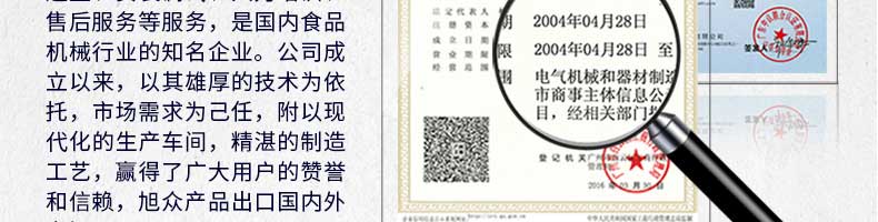 廣州旭眾食品機(jī)械有限公司是一家集科研開發(fā),生產(chǎn)設(shè)計(jì),營銷服務(wù)為一體的現(xiàn)代化生產(chǎn)企業(yè)?,F(xiàn)代化生產(chǎn)車間,精湛制造技術(shù),所產(chǎn)機(jī)械歷經(jīng)市場重重考驗(yàn),不斷贏得海內(nèi)外客戶的贊譽(yù)。
