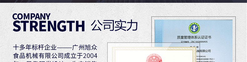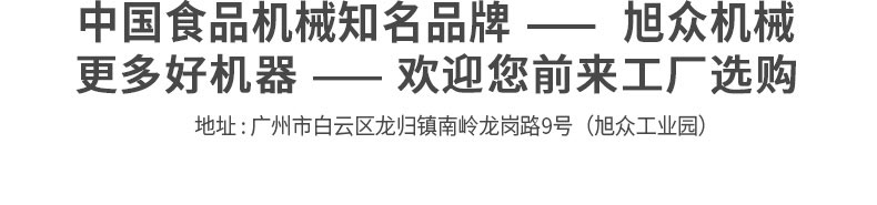 廣州旭眾食品機(jī)械有限公司是一家集科研開發(fā),生產(chǎn)設(shè)計(jì),營銷服務(wù)為一體的現(xiàn)代化生產(chǎn)企業(yè)?,F(xiàn)代化生產(chǎn)車間,精湛制造技術(shù),所產(chǎn)機(jī)械歷經(jīng)市場重重考驗(yàn),不斷贏得海內(nèi)外客戶的贊譽(yù)。