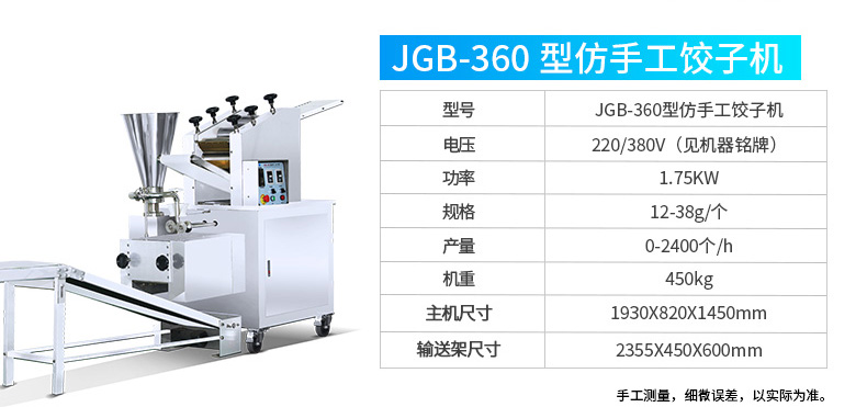 JGB-210型仿手工餃子機(jī),本機(jī)采用自動(dòng)壓面皮包餃子的新工藝技術(shù),本機(jī)可生產(chǎn)速凍餃子等,能生產(chǎn)各種肉餡、肉菜混合餡、全菜餡及其他種餡的餃子,適用于餃子館、食品生產(chǎn)廠家、賓館、飯店、餐廳、團(tuán)體食堂、學(xué)校、部隊(duì)。免費(fèi)上門安裝調(diào)試,贈(zèng)送面點(diǎn)工藝