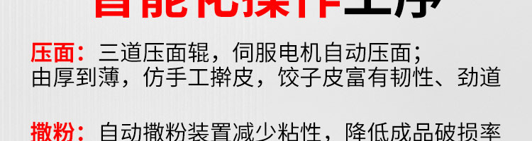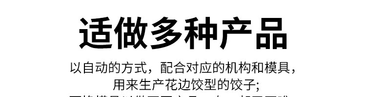 JGB-10型一體式餃子機,制皮成型一體餃子機,科技化生產(chǎn)/人性化設(shè)計。餃型可蒸、可炸、可煮,可適應(yīng)不同場合的客戶需求。功能、智能一體,以自動化科技與過硬質(zhì)量貼心服務(wù)。