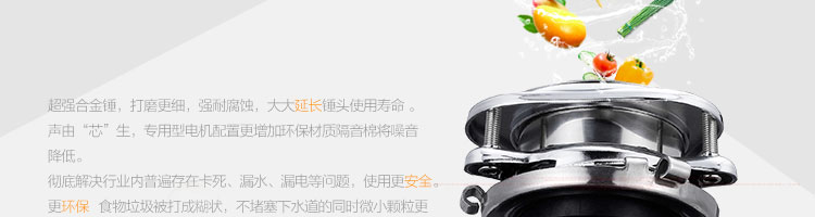 DCLQ56-廚房垃圾處理器,垃圾處理器能夠有效地將食物垃圾研磨成細(xì)小顆粒,直接從下水管道排出,從而輕松實(shí)現(xiàn)及時(shí)方便快捷的廚房清潔,避免食物囤積滋生病菌,蚊蟲和異味,有效優(yōu)化家居環(huán)境。