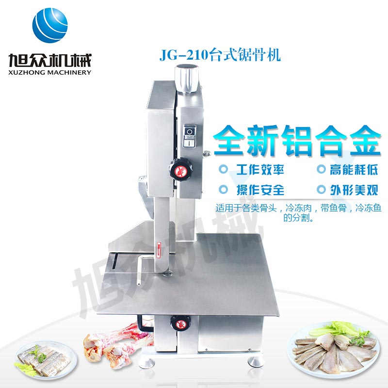 JG-210臺(tái)式鋸骨機(jī),適用于各類骨頭,冷凍肉,帶魚(yú)骨,冰塊,冷凍魚(yú)的分割。采用全不銹鋼材料制作,具有工作效率高,操作安全的特點(diǎn)。廣泛適用于食品加工廠,屠宰場(chǎng),肉類加工廠等