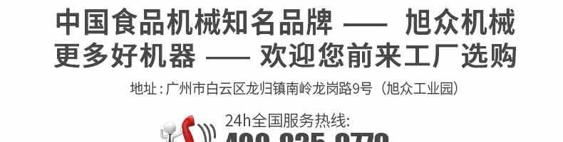 廣州旭眾食品機(jī)械有限公司是一家集科研開發(fā),生產(chǎn)設(shè)計(jì),營銷服務(wù)為一體的現(xiàn)代化生產(chǎn)企業(yè)?,F(xiàn)代化生產(chǎn)車間,精湛制造技術(shù),所產(chǎn)機(jī)械歷經(jīng)市場重重考驗(yàn),不斷贏得海內(nèi)外客戶的贊譽(yù)。