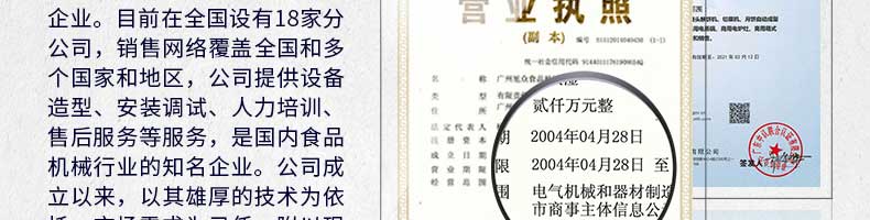 廣州旭眾食品機械有限公司是一家集科研開發(fā),生產(chǎn)設計,營銷服務為一體的現(xiàn)代化生產(chǎn)企業(yè)?,F(xiàn)代化生產(chǎn)車間,精湛制造技術,所產(chǎn)機械歷經(jīng)市場重重考驗,不斷贏得海內(nèi)外客戶的贊譽。