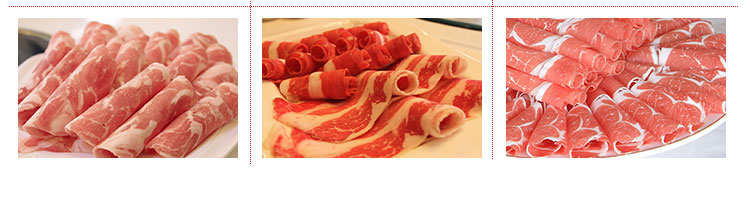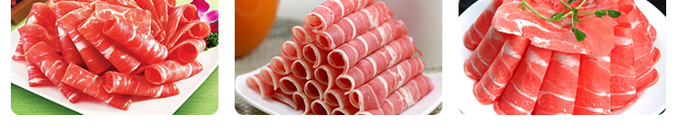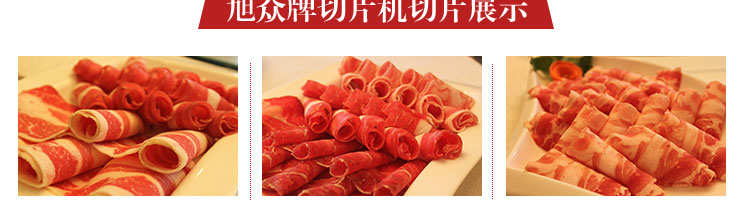 臺式半自動切片機,適合切無骨肉類和其他類似榨菜帶有彈性的食物,把原材料肉切成肉片,并可自動成卷狀??汕信H馄?、羊肉片等