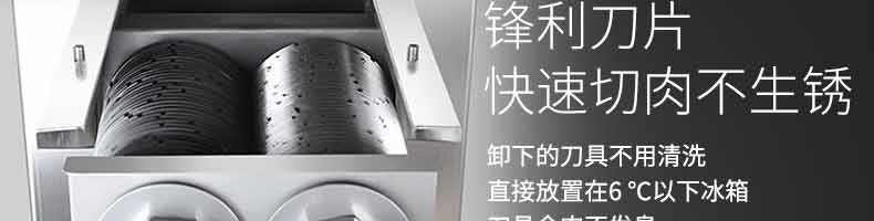 XZ-QX320-切肉機,小型切肉機是一款主要對肉類進行加工的設(shè)備,配置單層刀具一次性切肉片,二次切肉絲,再切成料。刀具采取外置懸臂式設(shè)計,拆洗方便,衛(wèi)生更有保障;配置多種刀具,可加工不同厚度的肉片,實現(xiàn)一機多用;機內(nèi)裝有安全保護開頭,刀具外露時,機器自鎖不能啟動,以保安全;卸下的刀具,不用清洗直接放置在6攝氏度以下的冰箱里,刀具余肉不發(fā)臭。刀片用特殊不銹鋼材料制造,經(jīng)久耐用。