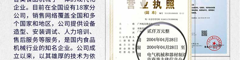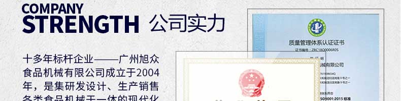 廣州旭眾食品機(jī)械有限公司是一家集科研開發(fā),生產(chǎn)設(shè)計(jì),營銷服務(wù)為一體的現(xiàn)代化生產(chǎn)企業(yè)?,F(xiàn)代化生產(chǎn)車間,精湛制造技術(shù),所產(chǎn)機(jī)械歷經(jīng)市場重重考驗(yàn),不斷贏得海內(nèi)外客戶的贊譽(yù)。