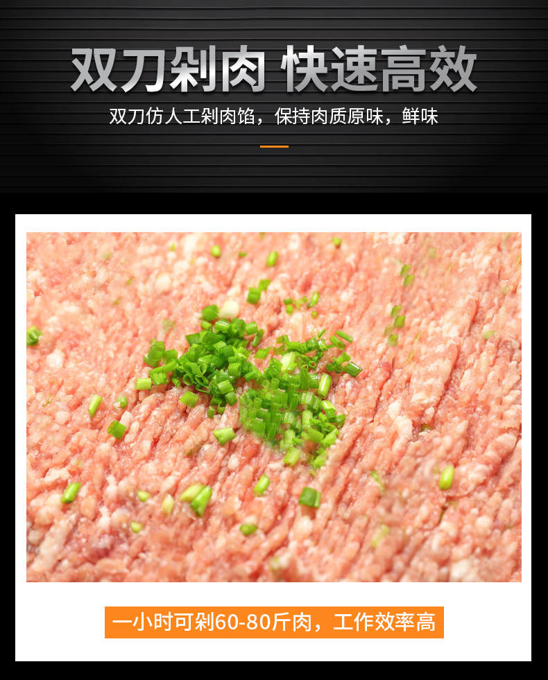 XZ-FL30剁肉機(jī),高效雙萬剁肉機(jī),輕松剁肉類、蔬菜、配料。仿人工剁肉、剁肉速度快、適用多場合。輕松搞定各種食材旭眾雙刀剁肉機(jī),讓你告別人工,高效剁各種食材。不銹鋼穩(wěn)定機(jī)身加厚不銹鋼板材,堅(jiān)固耐用,不易生銹,延長使用壽命