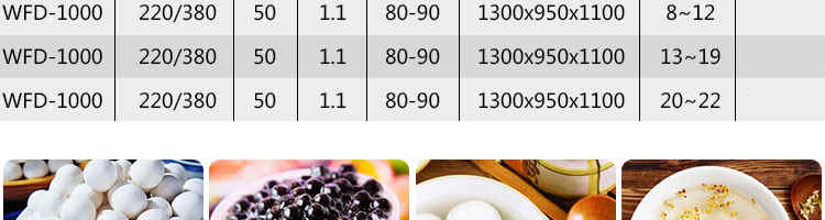 VFD-1000無(wú)餡湯圓機(jī),本機(jī)可生產(chǎn)無(wú)餡湯圓、珍珠湯圓、桂花湯圓、奶茶所用的珍珠、檳榔紅丸、工藝品等。規(guī)格有8-34mm,可根據(jù)客戶(hù)要求定制。適用于個(gè)體戶(hù)、食品廠、學(xué)校等單位食堂??蓾M(mǎn)足不同客戶(hù)群體。免費(fèi)提供工藝技術(shù)。
