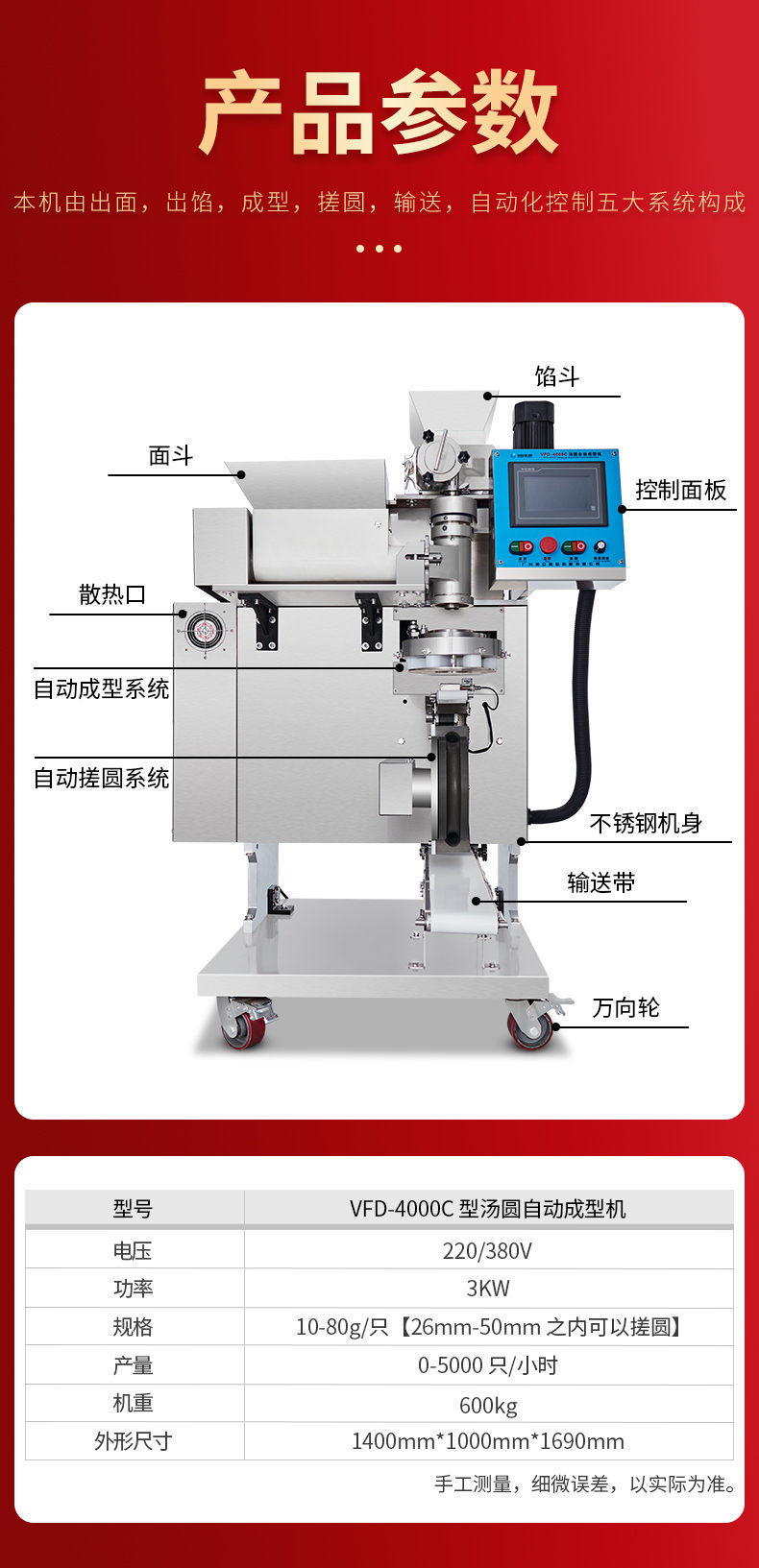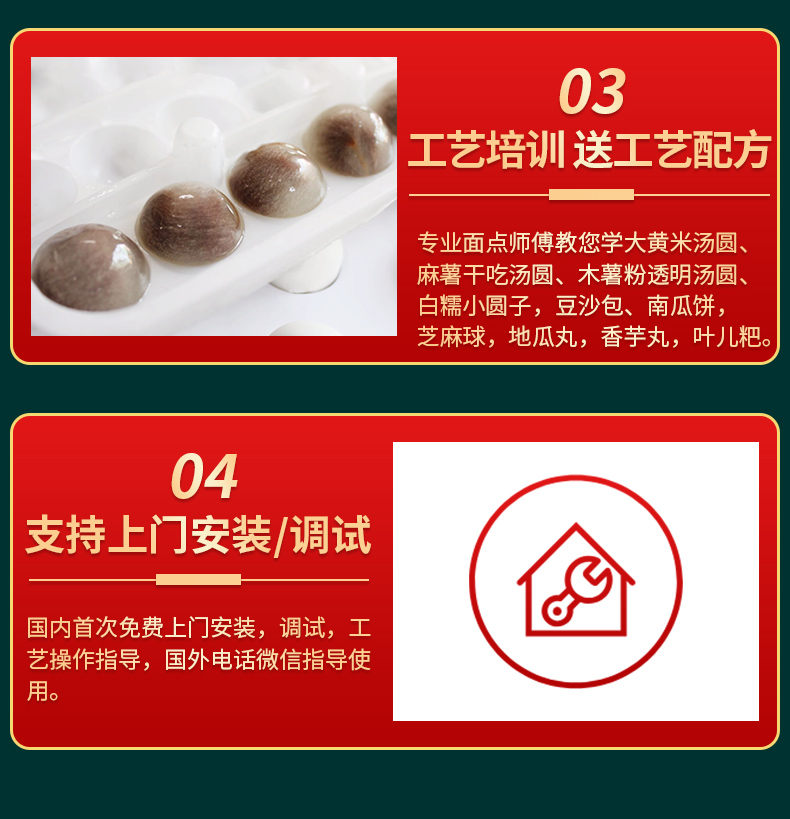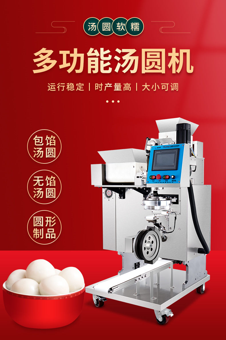 4000C湯圓機(jī),多功能湯圓機(jī),運行穩(wěn)定、時產(chǎn)量高、大小可調(diào)。制品多樣性生產(chǎn)各種大小規(guī)格不同的有餡湯圓,無餡湯圓、豆沙包、南瓜餅,芝麻球,地瓜丸,香芋丸,葉兒粑,青團(tuán),粘豆包等。