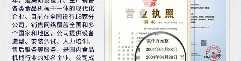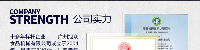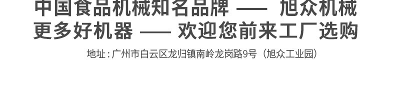 廣州旭眾食品機(jī)械有限公司是一家集科研開(kāi)發(fā),生產(chǎn)設(shè)計(jì),營(yíng)銷(xiāo)服務(wù)為一體的現(xiàn)代化生產(chǎn)企業(yè)。現(xiàn)代化生產(chǎn)車(chē)間,精湛制造技術(shù),所產(chǎn)機(jī)械歷經(jīng)市場(chǎng)重重考驗(yàn),不斷贏得海內(nèi)外客戶(hù)的贊譽(yù)。