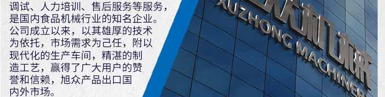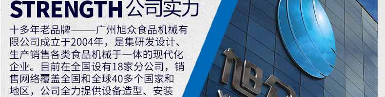 廣州旭眾食品機(jī)械有限公司是一家集科研開發(fā),生產(chǎn)設(shè)計(jì),營銷服務(wù)為一體的現(xiàn)代化生產(chǎn)企業(yè)。現(xiàn)代化生產(chǎn)車間,精湛制造技術(shù),所產(chǎn)機(jī)械歷經(jīng)市場(chǎng)重重考驗(yàn),不斷贏得海內(nèi)外客戶的贊譽(yù)。