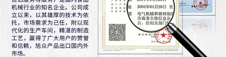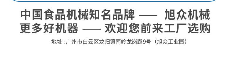 廣州旭眾食品機械有限公司是一家集科研開發(fā),生產(chǎn)設(shè)計,營銷服務(wù)為一體的現(xiàn)代化生產(chǎn)企業(yè)。現(xiàn)代化生產(chǎn)車間,精湛制造技術(shù),所產(chǎn)機械歷經(jīng)市場重重考驗,不斷贏得海內(nèi)外客戶的贊譽。