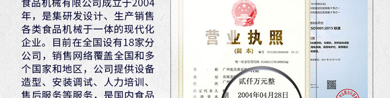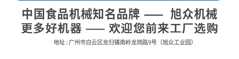 廣州旭眾食品機(jī)械有限公司是一家集科研開發(fā),生產(chǎn)設(shè)計(jì),營銷服務(wù)為一體的現(xiàn)代化生產(chǎn)企業(yè)?,F(xiàn)代化生產(chǎn)車間,精湛制造技術(shù),所產(chǎn)機(jī)械歷經(jīng)市場重重考驗(yàn),不斷贏得海內(nèi)外客戶的贊譽(yù)。