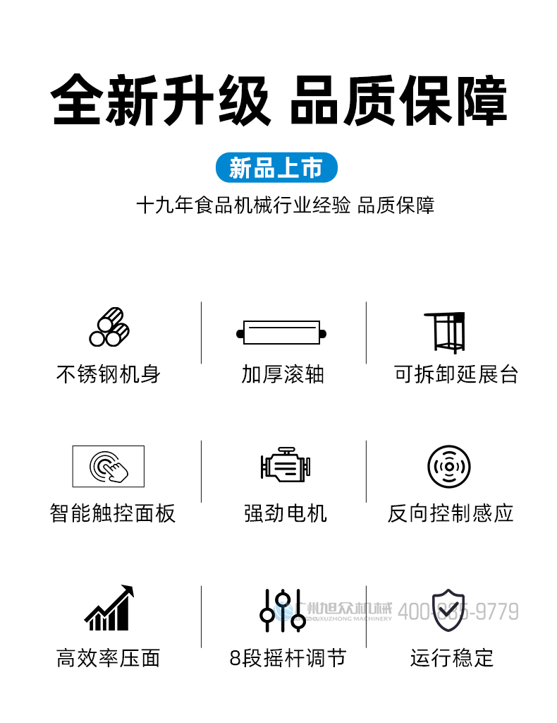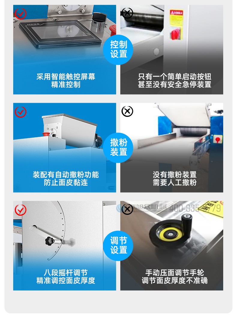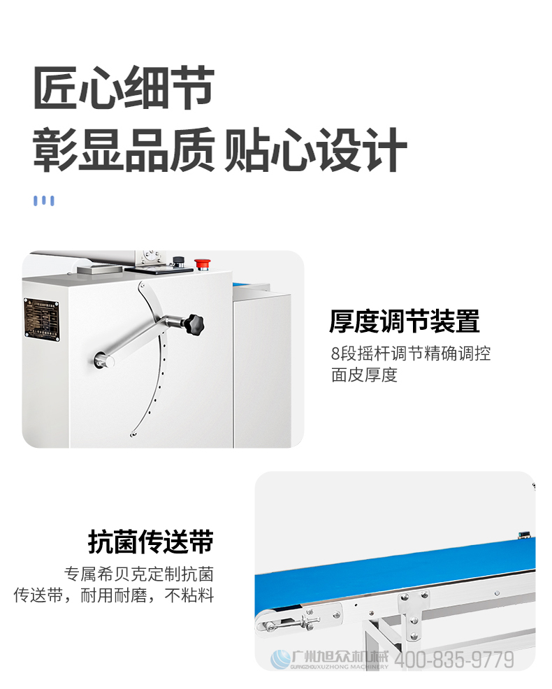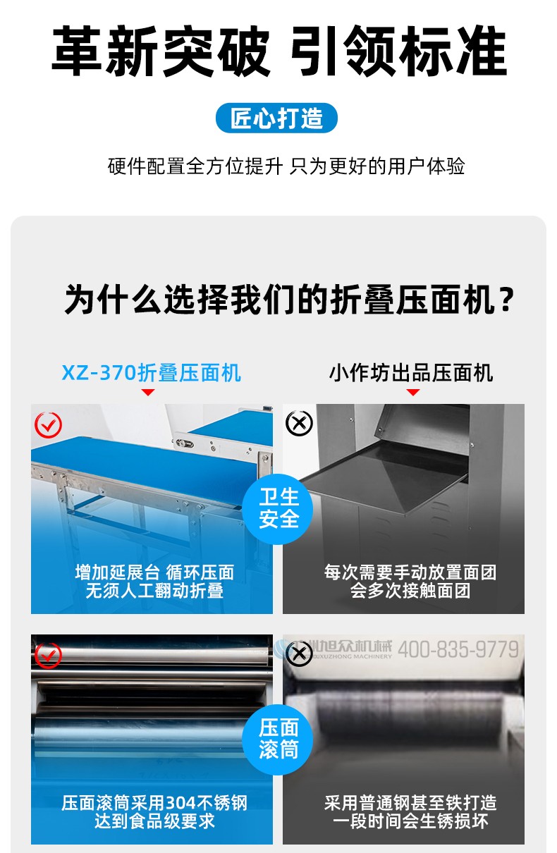 XZ-ZDYMJ370型自動(dòng)折疊壓面機(jī),整機(jī)不銹鋼機(jī)身打造,真材實(shí)料,選用不銹鋼材質(zhì),打造經(jīng)久耐用、防腐蝕。匠心細(xì)節(jié),彰顯品質(zhì)貼心設(shè)計(jì)。一鍵設(shè)定壓面次數(shù),智能定時(shí),只需設(shè)定好壓面次數(shù),就能全自動(dòng)壓面出面。