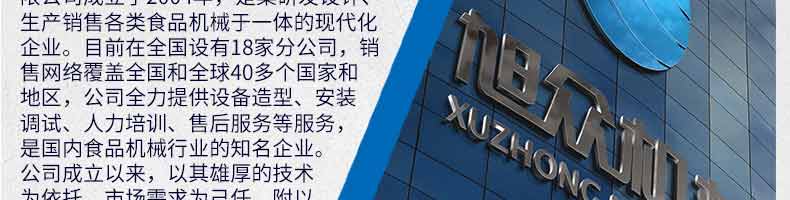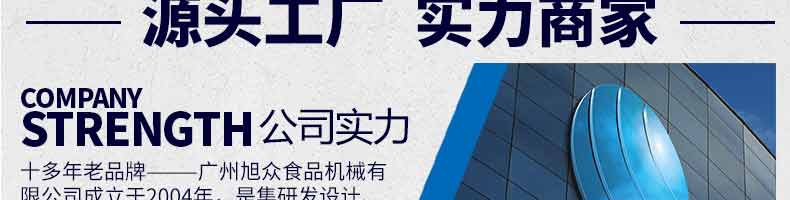 廣州旭眾食品機械有限公司是一家集科研開發(fā),生產(chǎn)設(shè)計,營銷服務(wù)為一體的現(xiàn)代化生產(chǎn)企業(yè)?,F(xiàn)代化生產(chǎn)車間,精湛制造技術(shù),所產(chǎn)機械歷經(jīng)市場重重考驗,不斷贏得海內(nèi)外客戶的贊譽。